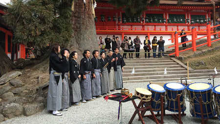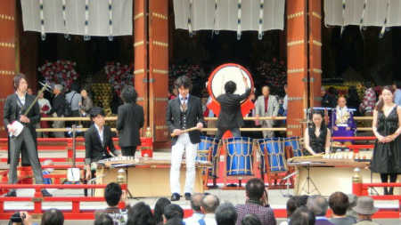 Yakushiji Temple in Nara, designated World Heritage in 2008, is the head temple of Hosso Buddhism. We performed at Hanae Shiki which takes place every spring to pray for the nation’s prosperity, fruitfulness, and happiness of the people.