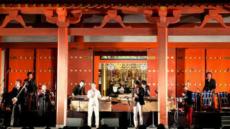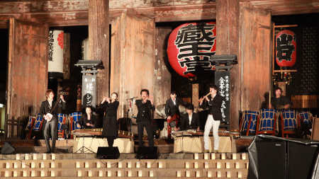 “Sakura Symphony & Save the Millennium Cherry Blossoms Charity Concert” was held at the World Heritage site at the food of Mountain Yoshino in Nara prefecture, called Kinpusenji Temple Zaodo. When the sun set, the national treasure Zaodo itself was lit up, and the sublime voice of the singer Kosuke Atari and the enchanting mix of AUN J Classic Orchestra filled the air surrounding the divine temple.